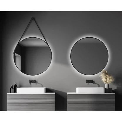 Der DSK Design Lichtspiegel Silver Barbier besticht durch seine hochwertigen Materialien, einen mattschwarzen Aluminiumrahmen und eine erstklassige Verarbeitung. Das Highlight des Design Spiegels Silver Barbier Black ist das umlaufende und hinterleuchtete Raumlicht. Der edle Gurt in trendiger, schwarzer Lederoptik ermöglicht eine dekorative Wandmontage und rundet das exklusive Design perfekt ab. Der Designspiegel passt mit einer Größe von Ø 80 cm in nahezu jeden Raum und sorgt für eine angenehme Beleuchtung. Die Montage ist in wenigen Schritten durchführbar und das benötigte Befestigungsmaterial ist im Lieferumfang enthalten.