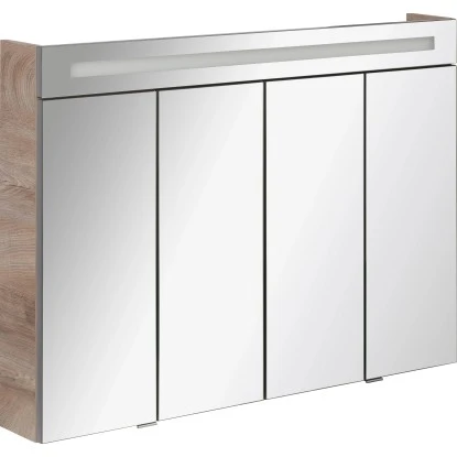 Der Falttüren-Spiegelschrank Twindy bietet Ihnen mit vier Türen und vier Glaseinlegeböden eine Menge Stauraum für alle Badutensilien, die Sie immer griffbereit zur Hand haben wollen. Dank der effizienten LED-Beleuchtung ist Ihr Stylingbereich immer optimal ausgeleuchtet. Lassen auch Sie sich von dem formschönen Design und der hochwertigen Verarbeitung verzaubern.