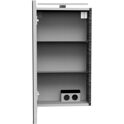 Immer mehr fungiert das Gästebad als Visitenkarte des persönlichen Einrichtungsstils. Der Fackelmann Spiegelschrank ist Teil der Small Bathroom Collection (SBC), mit der Fackelmann sein bewährtes Konzept für die Vielfalt und das elegante Ambiente im Gästebad neu überdacht und optimiert hat. Der hängend montierte Spiegelschrank begeistert mit zahlreichen ansprechenden Korpus- und Frontvarianten, die von Weiß über Anthrazit bis hin zu diversen Holzdekoren reichen. Die Beleuchtung des Spiegelschranks mit eingebauter LED-Aufsatzleuchte steuert eine Elektrobox mit Schalter und Steckdose. Die Tür links lässt sich ohne Griff öffnen. Im Inneren ist der Spiegelschrank mit 2 Glasablageböden ausgestattet, die 3 Fächer ergeben, welche viel Stauraum für alle notwendigen Badutensilien gewähren.