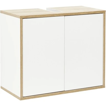 Der klassische Fackelmann Waschbeckenunterschrank Finn kann mit fast allen gängigen, wandhängenden Waschbecken kombiniert werden und bietet viel Stauraum direkt am Waschplatz. Hinter den 2 grifflosen Türen haben Sie Platz für Badartikel, Putzmittel oder ähnliches.
