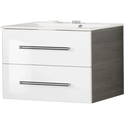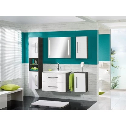 Das Badmöbelprogramm Como ist ausgestattet mit gedämpften Scharnieren und Griffen in Chrom. Die Schubladen haben ein Soft-Close-System.