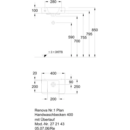 Geberit Handwaschbecken Renova Plan 40 Cm Weiß Mit Überlauf