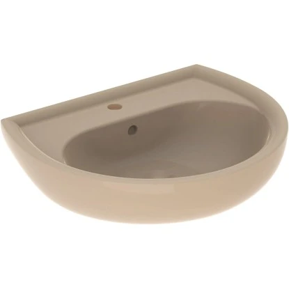 Das Waschbecken in klarem, rundem Design wird von der nach innen geneigten Beckenrandgestaltung unterstützt. Die Ränder gehen in eine Hahnlochbank über, die genügend Platz für Seifenspender oder Deko bereithält. Die Farbe Bahamabeige wirkt beruhigend und ist eine Alternative zum modernen Weiß. Trotzdem lässt es sich mit allen Farben, Möbeln und Dekorationen kombinieren.