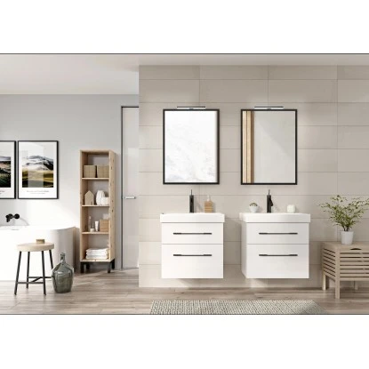 Mit dem ebenfalls erhältlichen, nicht im Lieferumfang enthaltenen Waschbecken, Spiegel, Hängeschrank und Hochschrank, schaffen Sie ein harmonisches Gesamtbild.