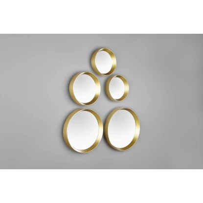 Warum nur einen einzigen Spiegel wählen, wenn man mit dem Spiegelset Lia gleich fünf haben kann? Ob zusammen an einer Wand oder separat an verschiedenen Stellen Ihrer Wohnung angebracht – mit dem runden, schwarz-goldenen Rahmen finden diese Spiegel überall ihren Platz.