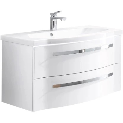 Das 2-teilige Pelipal Badmöbel-Set Fokus 4005 zeichnet sich durch edles Design und hohe Funktionalität aus. Das Set, bestehend aus einem elegant geschwungenen Waschbeckenunterschrank und einem hochwertigen Mineralmarmor-Waschtisch mit Beleuchtung lässt sich mit seinen Fronten in zeitlosem, polarweißem Hochglanz Lack in beinahe jede Stilrichtung integrieren. Die Bügelgriffe in Chrom Glanz unterstreichen die lackierte Front und setzen klare Akzente in Ihrem Badezimmer. Die angenehme und indirekte Beleuchtung in der Schattenfuge, zwischen dem Waschbecken und dem Unterschrank, sorgt zusätzlich für eine tolle Optik. Sie ist mit einem Bewegungssensor ausgestattet und leuchtet dezent in die geöffneten Schubladen.