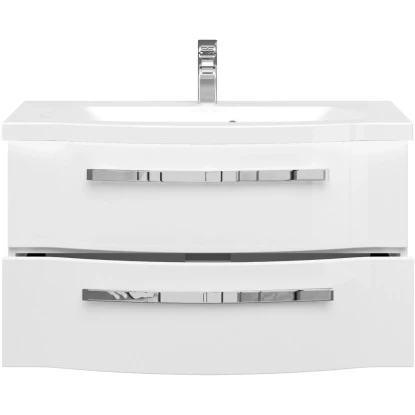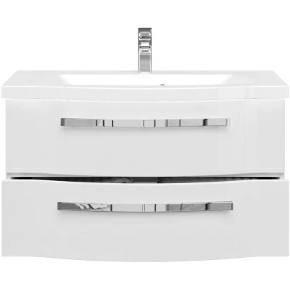 Die mehrfach lackierten Oberflächen des Waschbeckenunterschranks sorgen für perfekten Glanz und lassen sich auch ohne aggressive Reinigungsmittel bequem und leicht reinigen. Dank hochwertiger Melaminbeschichtung im Inneren ist der Badezimmerschrank zudem optimal vor Feuchtigkeit geschützt.