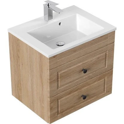Badmöbel Waschtisch Unterschrank, 2 Schubladen mit Softclose (B/H/T) 59/54/45,6 cm.