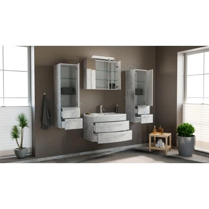 Trotz des enormen Platzangebots wirkt das Badmöbel-Set Luna leicht und schwerelos. Durch die wandhängende Montage wird der Raum optisch nicht erdrückt und die Möbel können ihre unaufdringliche Eleganz entfalten. Zudem sind die Schubladen und Schrankfächer optimal in bequemer Haltung erreichbar und auch die Bodenpflege unter den Badmöbeln gestaltet sich mühelos. Leichten Zugang zu Hygieneartikeln, Kosmetika und Handtüchern verschafft das integrierte Softclose-System. Abgerundete Möbelkanten und eine feuchtigkeitsresistente Schutzbeschichtung erweisen sich im alltäglichen Gebrauch als angenehm nützlich und gewährleisten, ebenso wie das Waschbecken aus flexiblem Mineralguss und die Handgriffe aus gebürstetem Edelstahl, eine lange Lebensdauer. Die Türen des Spiegelschranks sind ebenfalls mit Softclose-Funktion ausgestattet, eine moderne Acrylglaslampe sorgt für gute Ausleuchtung und eine angenehme Atmosphäre.