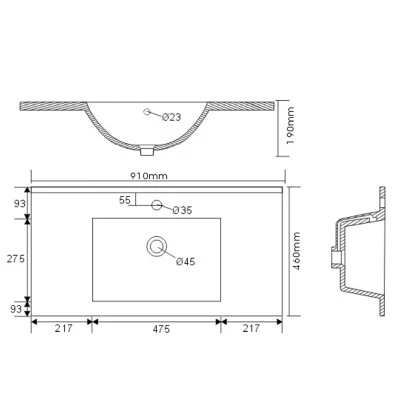 Das Mineralguss-Waschbecken ist in einem modernen, eckigen Design gestaltet. Mit seinem breiten Rand bietet es Abstellflächen auf allen Seiten. Mineralguss ist ein leichter Werkstoff und vereinfacht die Montage. Das pflegeleichte Kunststoffmaterial kann bei Bedarf poliert werden, Kratzer lassen sich somit leicht entfernen. In den Waschtisch integriert ist ein Überlaufloch, das das Überlaufen des Waschbeckens verhindert.