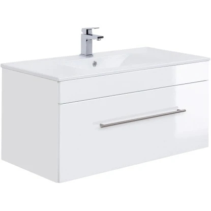 Das Badmöbel-Set Viva zeichnet sich durch modernes Design und hochwertige Qualität aus. Die Serie ist in verschiedenen Farben erhältlich und bietet tolle Kombinationsmöglichkeiten. Das formschöne Keramikwaschbecken ist pflegeleicht und wird einfach auf den Waschbeckenunterschrank aufgesetzt. Die Fronten der Möbel sind auch über die Kanten und Ecken mit einer hochwertigen Beschichtung versehen. Die weichen Kanten verleihen dieser Möbelserie eine schöne 3D-Optik. Der Korpus ist in Weiß matt gehalten während für die Fronten sowohl die Farben Weiß Hochglanz, Schwarz und Anthrazit als auch eine edle Betonoptik zur Auswahl stehen. Die Schubladen und ggf. Türen schließen mit der bequemen Soft-Close-Funktion und ziehen sich selbstständig auf den letzten Zentimetern sanft ein.