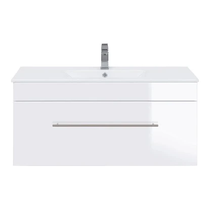 Nicht zum Lieferumfang gehören Armaturen, Zuleitungen zum Wasserhahn, der Waschbeckenverschluss Popup und der Syphon.
