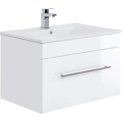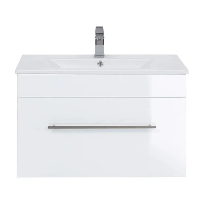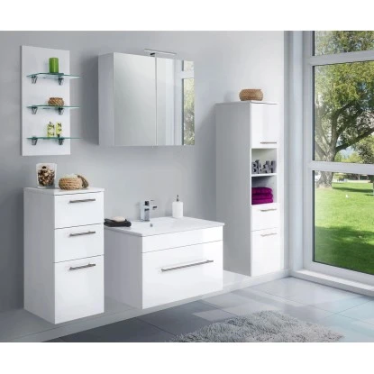 Das Badmöbel-Set Viva zeichnet sich durch modernes Design und hochwertige Qualität aus. Die Serie ist in verschiedenen Farben erhältlich und bietet tolle Kombinationsmöglichkeiten. Das formschöne Keramikwaschbecken ist pflegeleicht und wird einfach auf den Waschbeckenunterschrank aufgesetzt. Die Fronten der Möbel sind auch über die Kanten und Ecken mit einer hochwertigen Beschichtung versehen. Die weichen Kanten verleihen dieser Möbelserie eine schöne 3D-Optik. Der Korpus ist in Weiß matt gehalten während für die Fronten sowohl die Farben Weiß Hochglanz, Schwarz und Anthrazit als auch eine edle Betonoptik zur Auswahl stehen. Die Schubladen und ggf. Türen schließen mit der bequemen Soft-Close-Funktion und ziehen sich selbstständig auf den letzten Zentimetern sanft ein.