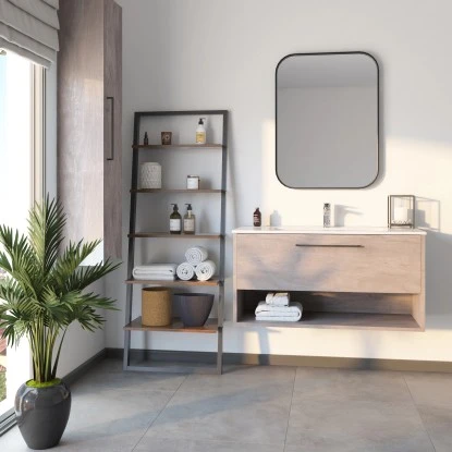 Der rechteckige Spiegel verfügt über einen Metallrahmen und kann sowohl vertikal als auch horizontal installiert werden, um den gewünschten Stil und die gewünschte Ausrichtung des Raumes anzupassen. Dank seiner vielseitigen Aufstellmöglichkeiten bietet er Flexibilität bei der Raumgestaltung.