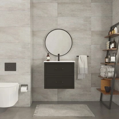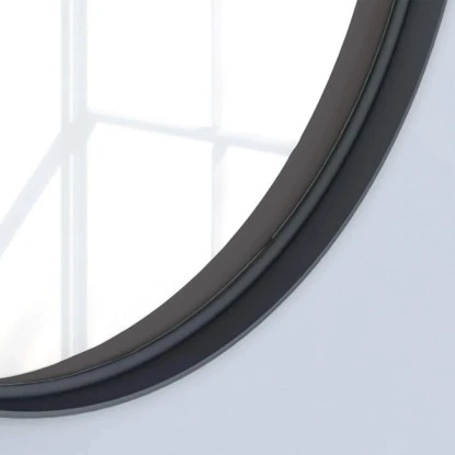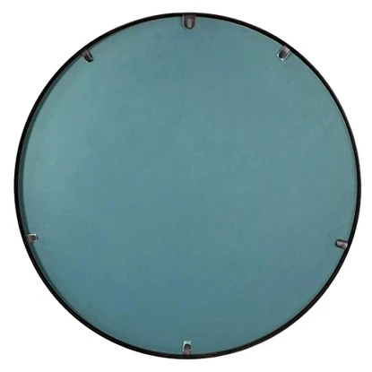 Der Spiegel verfügt über einen Metallrahmen, der in einer glänzenden Lackierung ausgeführt ist. Seine Abmessungen betragen 60 cm im Durchmesser und 4 cm in der Tiefe.