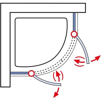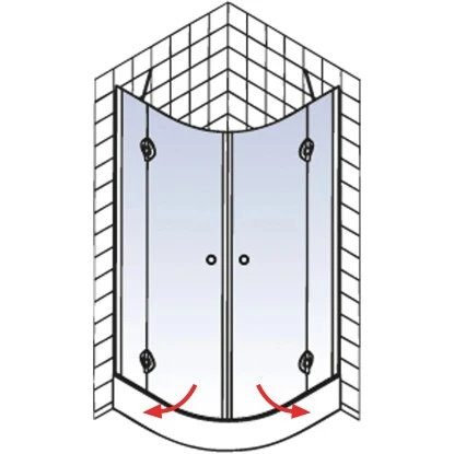 Die vierteilige Runddusche der Serie MasterClass von Schulte überzeugt mit vier großflächigen Echtglasscheiben (ESG), von denen zwei feststehend sind und zwei als Drehtüren fungieren. Die beiden großflächigen Türen sind mit hochwertigen Scharnieren aus Aluminium an diesen Seitenteilen befestigt. So entsteht ein großzügiger Einstieg in die Runddusche.