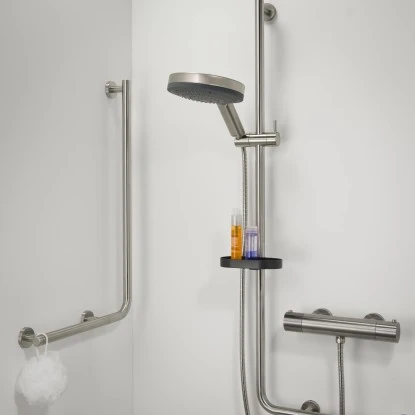 Der Griff besitzt eine Belastbarkeit von 150 kg und ist eine ideale Hilfe für Ihr Bad. Der Griff ist aus gebürstetem Edelstahl gefertigt und kann optional mit dem separat erhältlichen Anti-Slip-Griffüberzug ausgestattet werden.