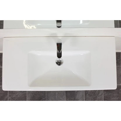 Durch die 2 Softclose Schubladen, bietet Ihnen der Waschtisch wertvollen Stauraum, der Ihnen beim Organisieren Ihrer Badartikel hilft. Die 2 Softclose Schubladen sind angenehm leichtgängig und dank des Vollauszugs haben Sie den Schubladeninhalt immer komplett im Blick. Volle Badregale, die bisher optisch für Unruhe im Raum sorgten, gehören so der Vergangenheit an. Noch dazu verfügt das Keramik Waschbecken selbst über zusätzliche Ablagefläche, was Ihnen bei der Morgenhygiene noch mehr Komfort erlaubt. So kann direkt auf dem Becken von der Zahnbürste bis zum Gesichtsreinigungsprodukt alles ordentlich abgestellt werden. Es ist sogar ausreichend Fläche vorhanden, um die Produkte von zwei Personen zu arrangieren. So kann sich jeder auf seiner Seite des Waschbeckens ausbreiten.