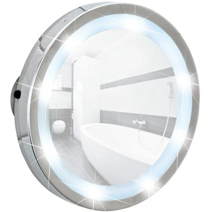 Der Kosmetik-Wandspiegel Mosso mit LED-Beleuchtung fügt sich mit seinem zeitlosen Design dezent in die Einrichtung ein. Durch seine 300% vergrößernde Spiegelfläche (Ø 11,5 cm) eignet er sich besonders für den kosmetischen Einsatz – für mehr Freude beim Schminken und Rasieren. Der Wandspiegel ist verchromt und kann mit 3 Saugnäpfen auf glatten Flächen einfach befestigt werden. Mit 8 integrierten LEDs hat er eine extrem hohe Leuchtkraft. Die Lebensdauer der integrierten LED-Technik (batteriebetrieben) ist extrem hoch und liegt bei ca. 50.000 Stunden. Die Batterien (4 x 1,5 V AAA) sind nicht im Lieferumfang enthalten.